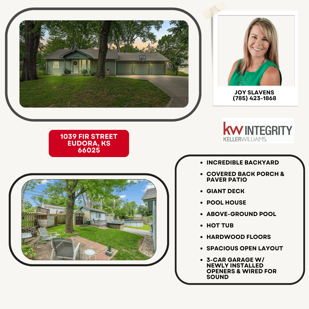 The listings featured for the week of May 24th – May 30th feature three homes by Joy Slavens, Sarah Stegman and Carson Levine. Call today for more information. 785-856-2530